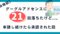 グーグルアドセンスに21回不合格。それでも諦めずに申請を続けた結果、ついに承認されました。実際にやったこと、気を付けたこと、心が折れそうになった体験談をまとめます。